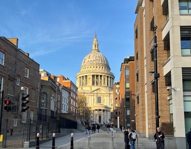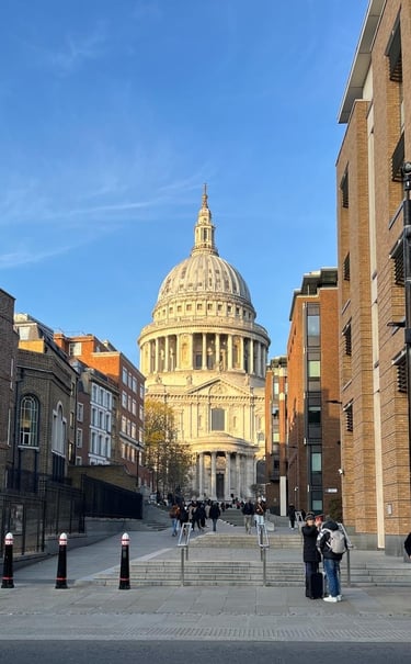 St Paul's Cathedral, avec son dôme majestueux perché à 111 m, elle invite à la contemplation. En gravissant ses marches, on découvre tout en haut une vue panoramique à couper le souffle, un moment suspendu, entre sérénité, inspiration et émerveillement.